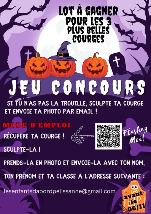 ci joint l’affiche pour le jeu concours d'Halloween ; mode d'emploi pour participer.